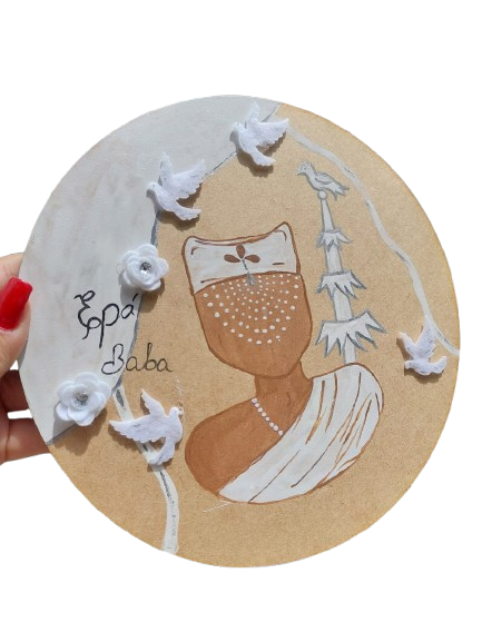 Placa em MDF 15 cm, pintura manual com tinta acrílica, adicionais de pingentes e nome do guia (qualquer característica deve ser falado após a finalização da compra)